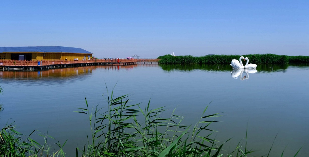 A photo shows white swans swimming in Wuliangsu Lake, Bayannuur, Inner Mongolia autonomous region. [Photo by Qi Hongyan/Provided to chinadaily.com.cn]