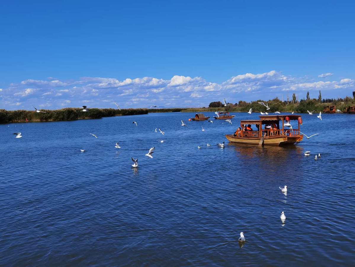 Tourists enjoy the beautiful sceneries of Wuliangsu Lake in Bayannuur, Inner Mongolia autonomous region. [Photo by Hu Dongyu/Provided to chinadaily.com.cn]