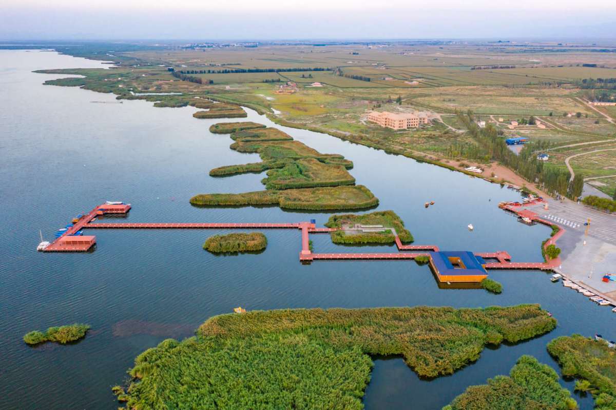 An aerial photo shows walkways built on the surface of Wuliangsu Lake in Bayannuur, Inner Mongolia autonomous region. [Photo provided to chinadaily.com.cn]