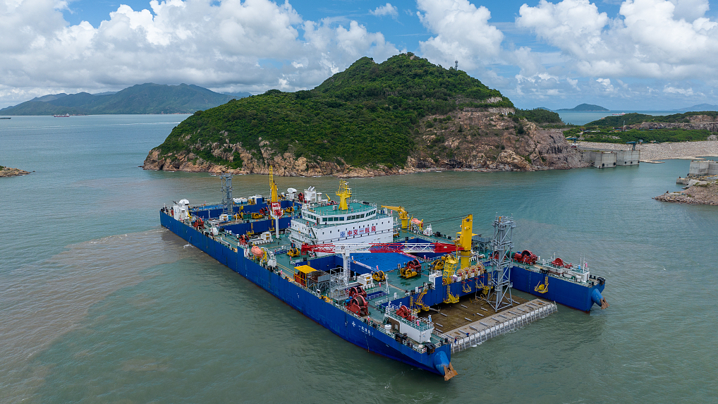 A 6,845-meter-long subsea tunnel of the mega cross-sea project closes up on Sunday in South China's Guangdong province, three days after the installation of the tunnel's last tube, according to the Guangdong Communications Group.