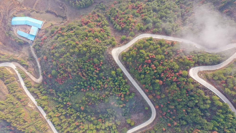 An aerial photo shows winding roads in Cengong county. [Photo by Hu Panxue/Provided to chinadaily.com.cn]