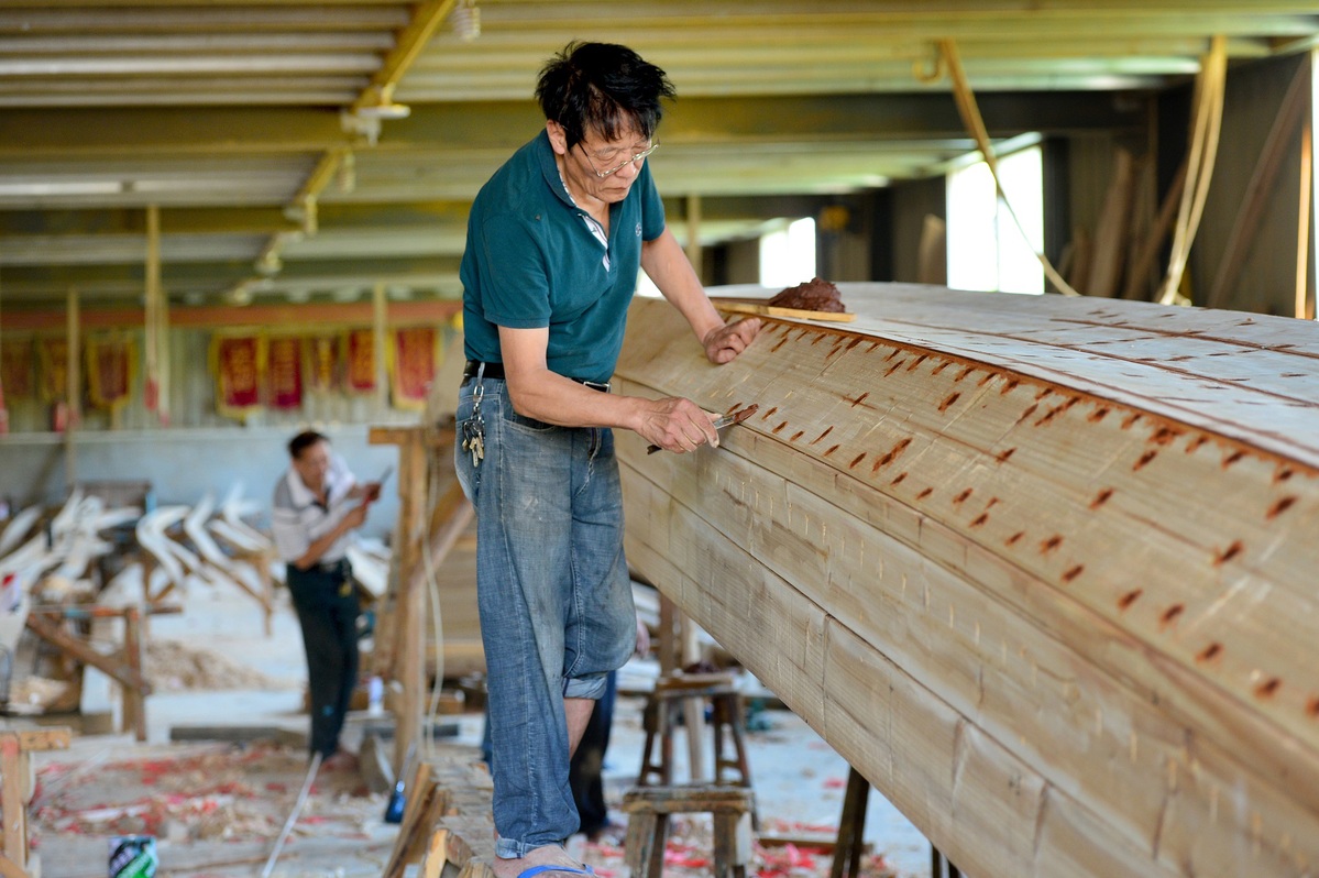 In 2018, the family's technique was listed as a city-level intangible cultural heritage. They insist on using axes, carving knives, hammers, ink sticks and other tools handed down by the old generation to build dragon boats by hand.