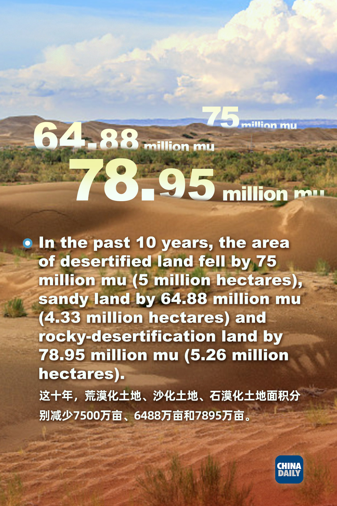 China's desert control achievements in numbers
