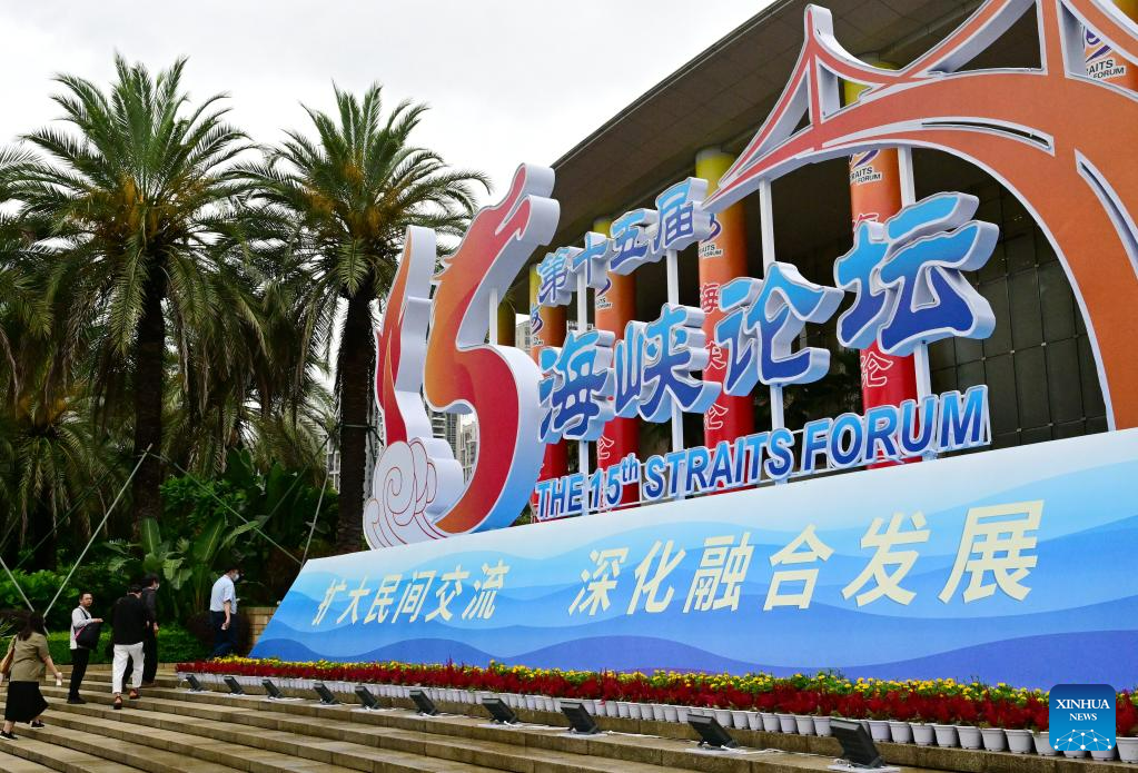 This photo taken on June 17, 2023 shows the venue of the 15th Straits Forum in Xiamen, southeast China's Fujian province. The 15th Straits Forum kicked off in Xiamen Saturday. [Photo/Xinhua]