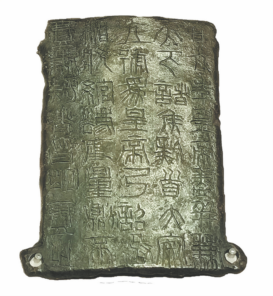 When Qinshihuang, China's first emperor, established the Qin Dynasty and united the country, he also promoted a uniform writing system absorbing characters from various regions. An exhibited bronze tablet carved with 40 characters, which was made in 221 BC when he united China, documented Qinshihuang's edict to standardize the nation's weights and measures.