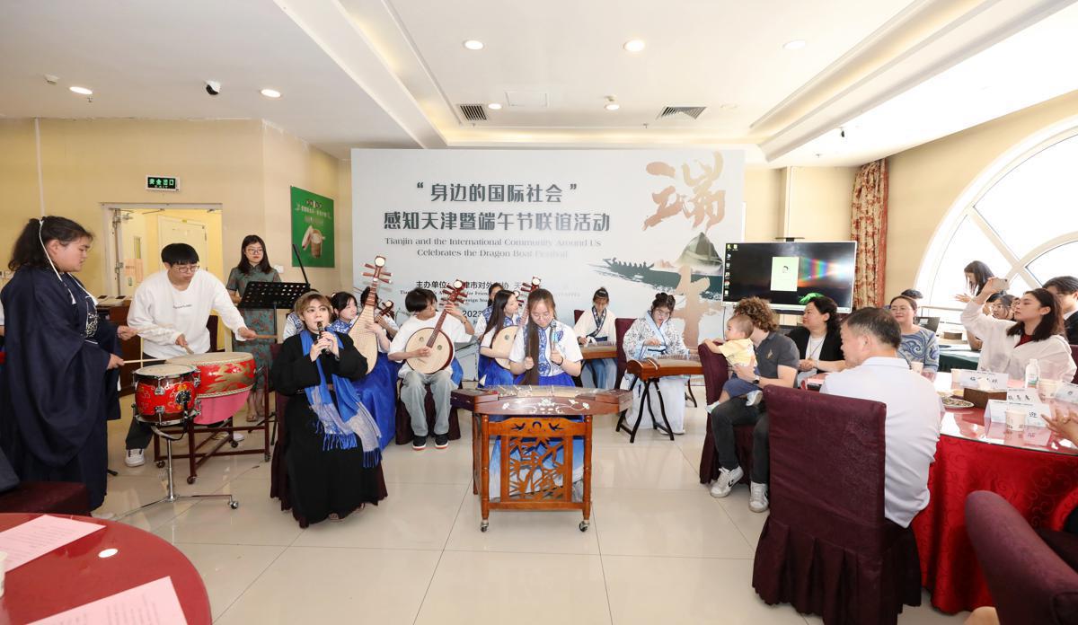 Students from Tianjin Foreign Studies University perform traditional Chinese music during the event. [Photo by Dou Wendong / for chinadaily.com.cn]