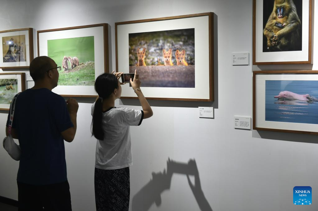 Visitors view photos at a photography exhibition during the 14th China Photography Festival in Sanmenxia city of Central China's Henan province, June 22, 2023. [Photo/Xinhua]