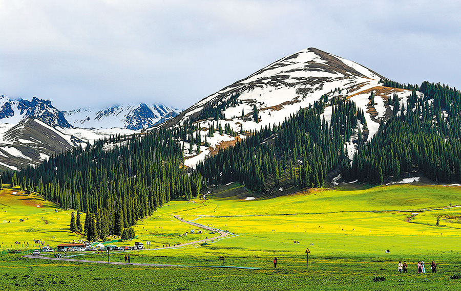 Tourists visit the Nalati scenic spot in Xinyuan county, Xinjiang, on May 19.[Photo/Xinhua]