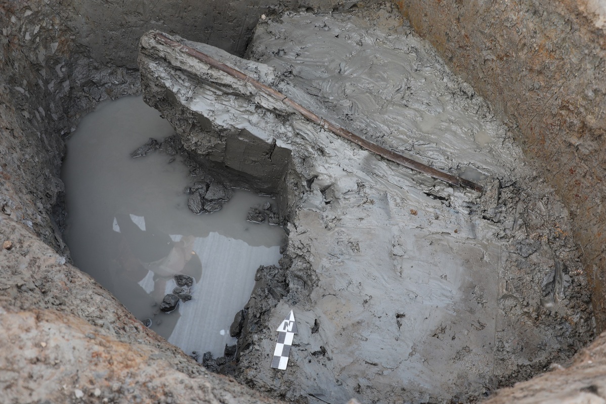 "Two wooden oars were unearthed from the relic site of Dahutou, which is the first wooden oar from the Eastern Zhou Dynasty unearthed in Shaoxing, providing materials for the study of its water town," You Xiaolei, director of the Shang and Zhou Dynasties Archaeological Office of the Zhejiang Provincial Institute of Cultural Relics and Archeology, told China Daily.