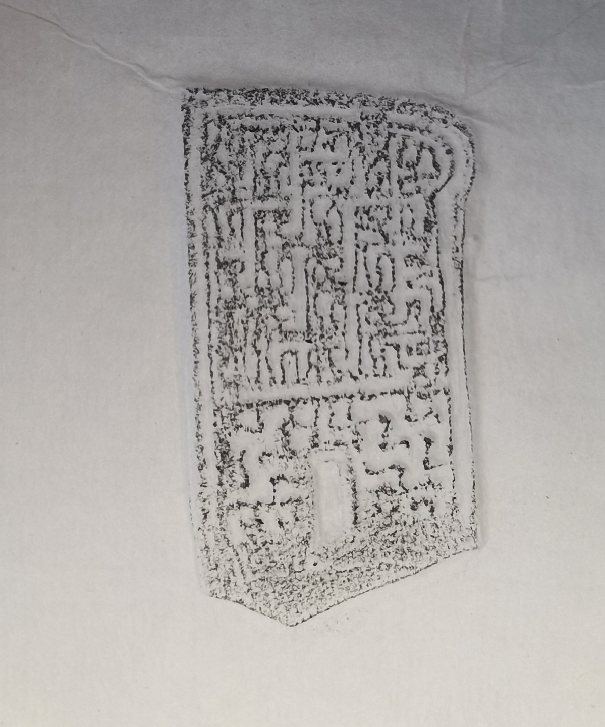 Rubbings of the bronze dagger remnant unearthed at the relic site of Nanshan. [Photo by Xu Xinmin/For chinadaily.com.cn]