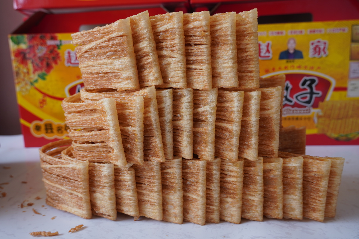 is made from pure cottonseed oil and high-quality wheat flour and carefully processed through 10 steps, with the whole batch of dough eventually becoming one thin noodle. [Photo provided to chinadaily.com.cn]