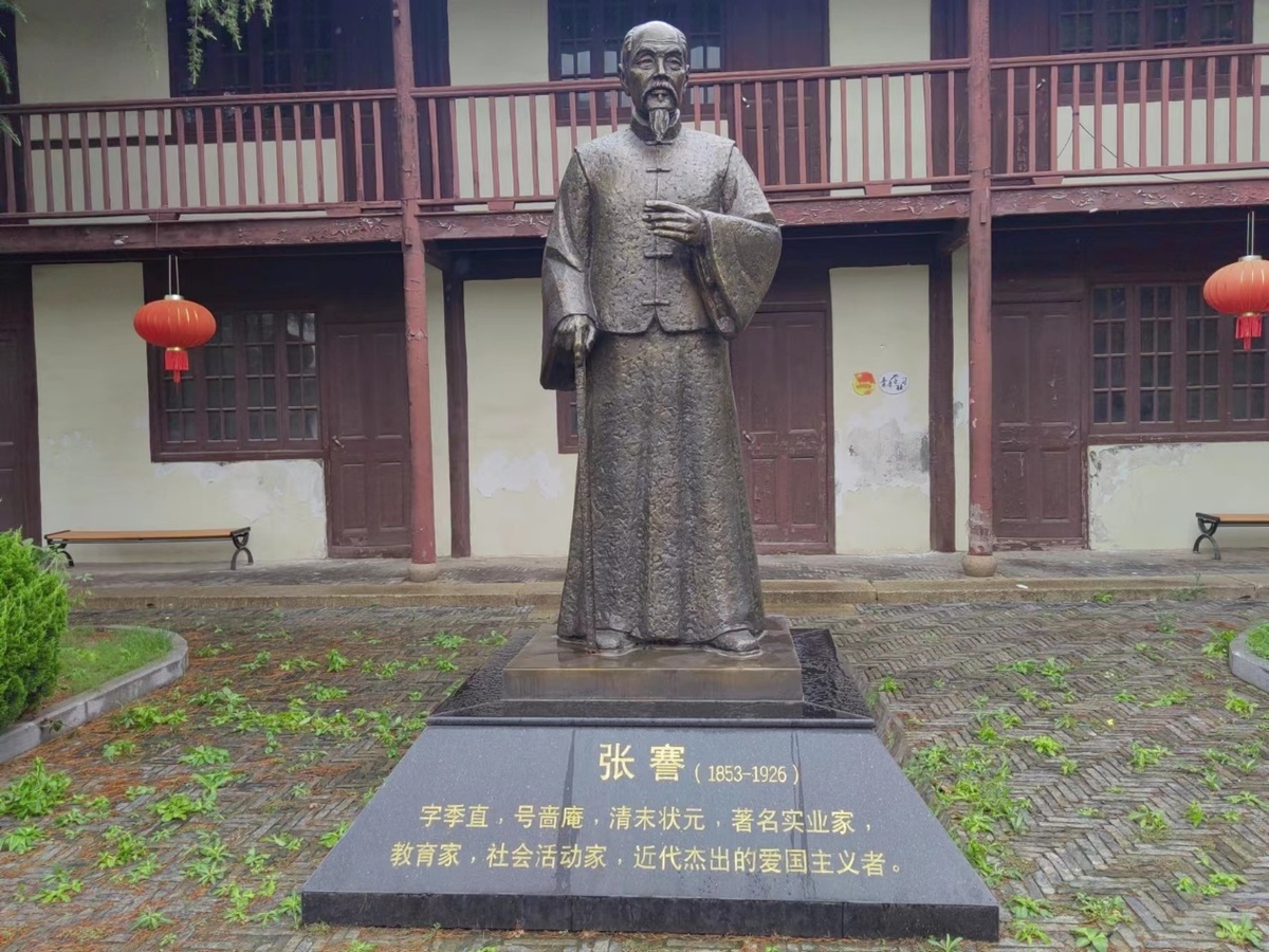 A statue for Zhang Jian is established to commemorate his accomplishments in Nantong. [Photo by Xin Siyuan/chinadaily.com.cn]