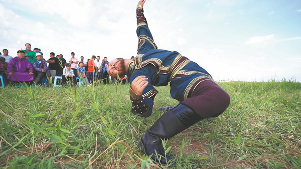 When Li Degjin got onstage and started dancing, audiences were intrigued by his movements. The maneuvering of his hands, shoulders and legs originate from the nomadic way of life in North China's Inner Mongolia autonomous region. They express aspects of the ethnic Mongolian lifestyle, such as household labor, customs and traditions.