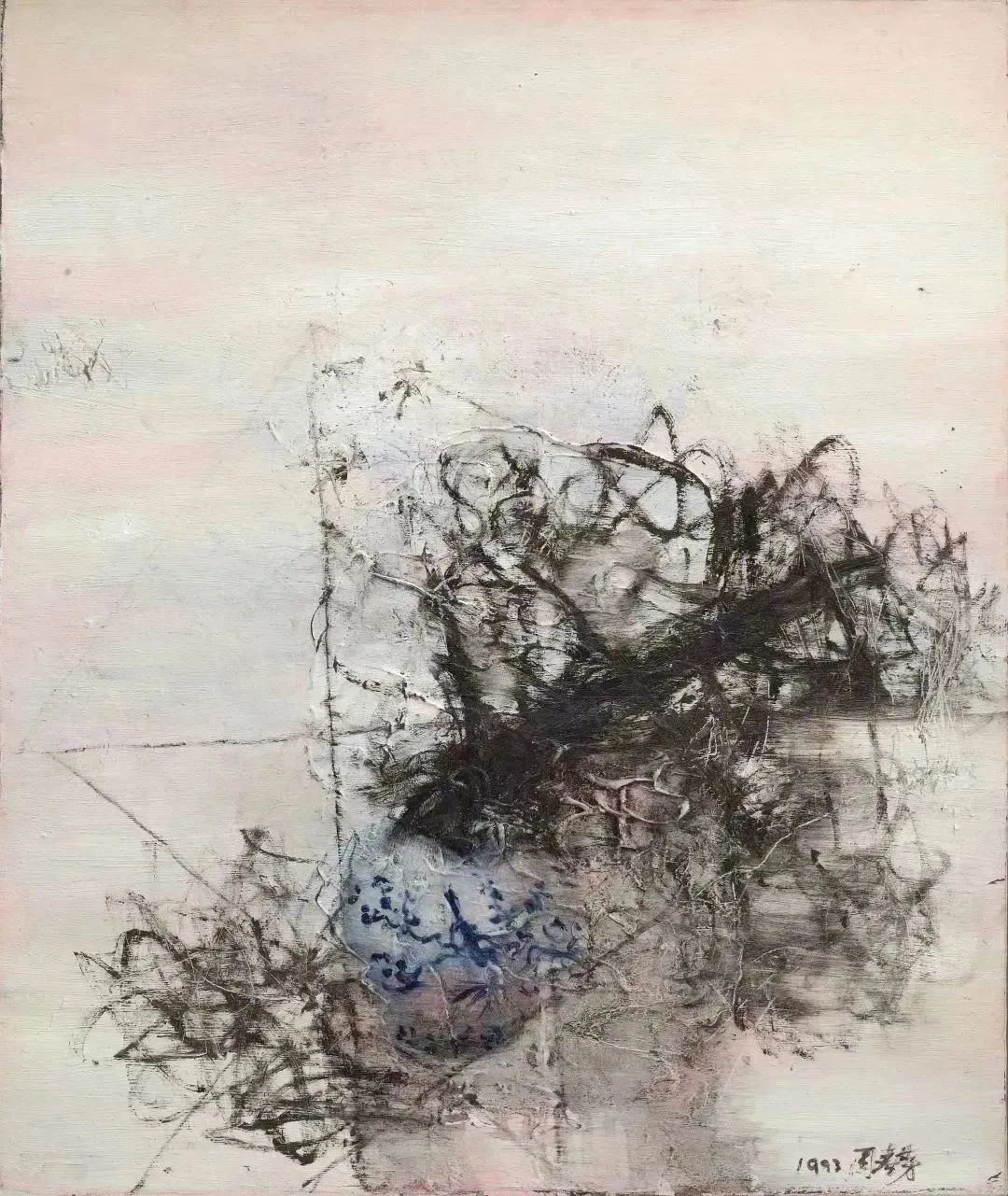 Plum Blossom in Vase, Zhou Chunya, oil on canvas, 1993 [Photo/Official WeChat account of the Liu Haisu Art Museum]