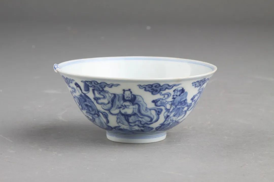 Blue-and-white bowl with patterns of Eight Immortals, Yongzheng Reign (1723-35) of the Qing Dynasty [Photo/Official WeChat account of the Zhangjiagang Museum]