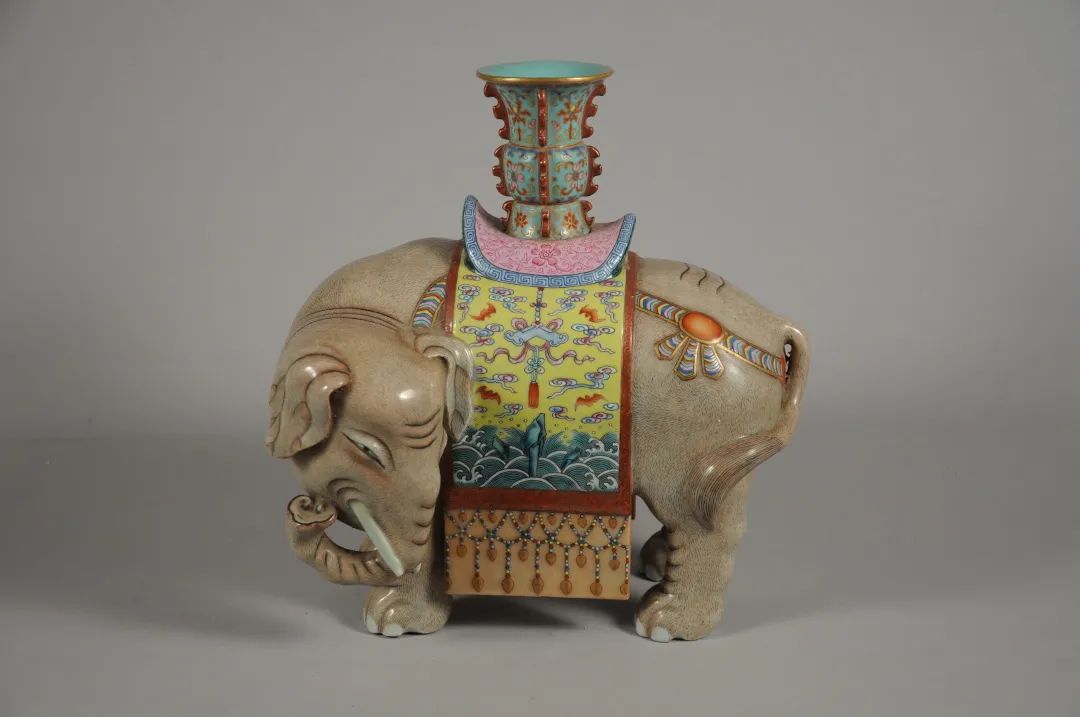 Famille-rose ceramic in the shape of an elephant, Qianlong Reign of the Qing Dynasty [Photo/Official WeChat account of the Zhangjiagang Museum]