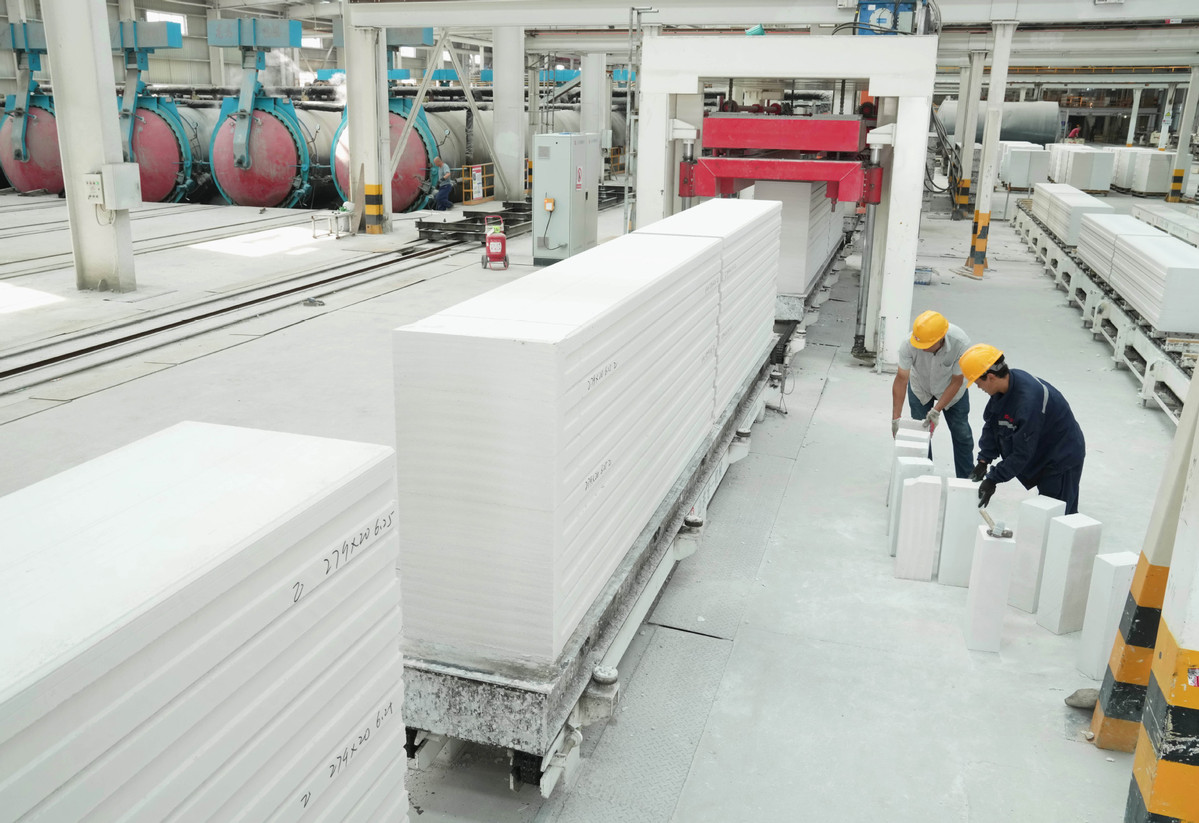 Workers work in a manufacturing shop at a new construction material company in Luannan county, Hebei province, on June 27, 2023. [Photo/Xinhua]