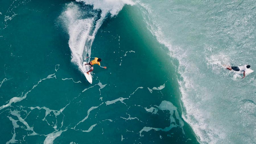 Surfers ride high to catch the perfect wave during the Hainan Surfing Open in December in Wanning, Hainan province. [Photo provided to China Daily]