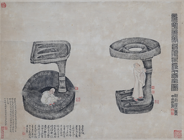 A painting integrating ink rubbings of a bronze oil lamp, Chen Geng, Qing Dynasty, from the collection of the Shanghai Library [Photo/Official WeChat account of the Shanghai Museum]