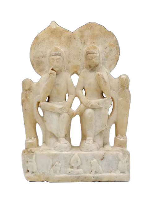 Painted statues of two Bodhisattvas and two disciples, Northern Qi Dynasty (550-577), from the collection of the Dingzhou Museum [Photo/Official WeChat account of the Museum of Wu]
