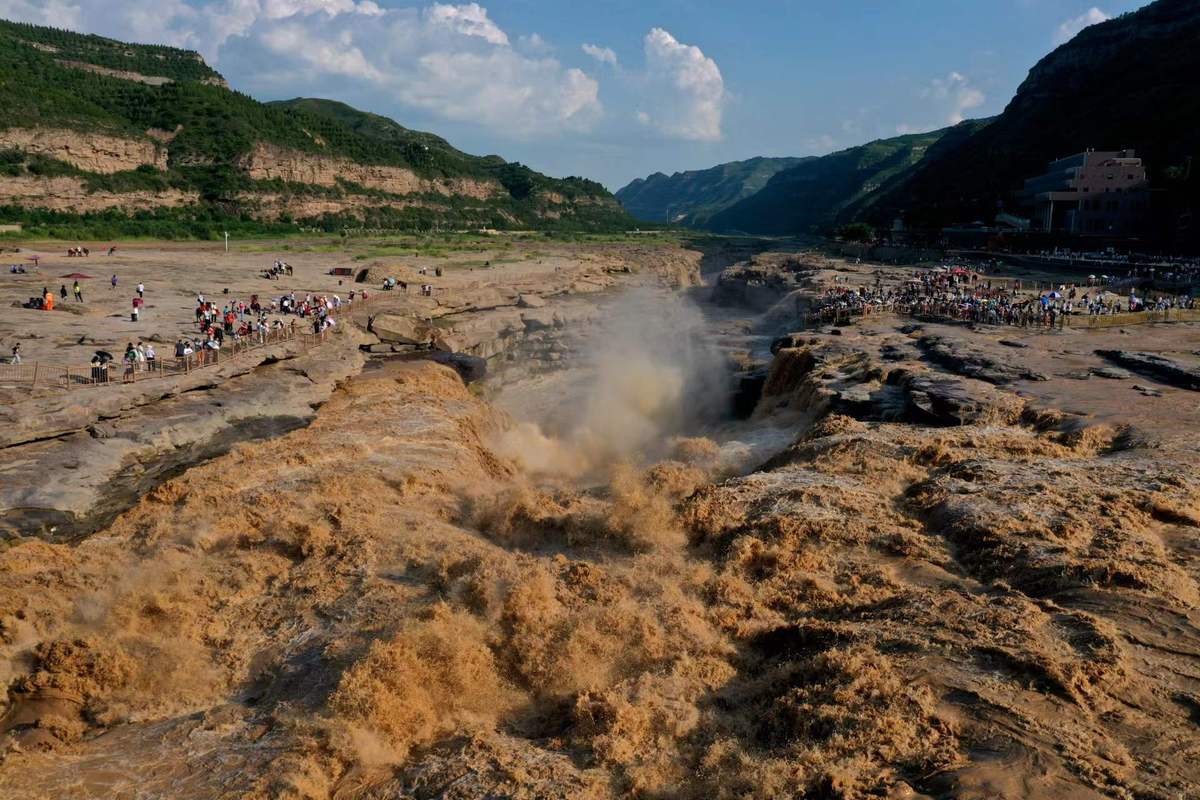 The Hukou Waterfall in Linfen, Shanxi province, attracts visitors on June 29, 2023. [Photo by Lyu Guiming/For chinadaily.com.cn]