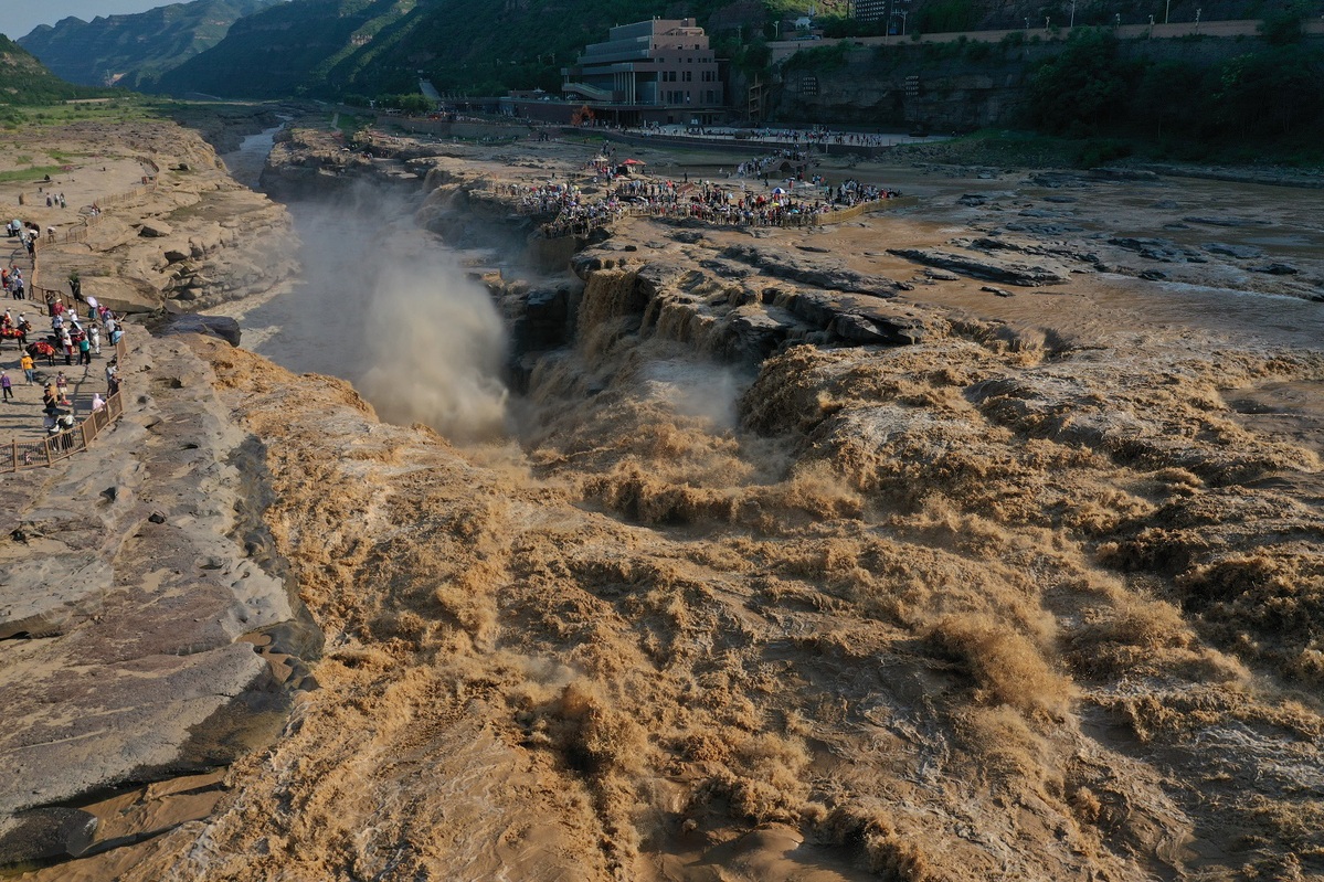 The Hukou Waterfall in Linfen, Shanxi province, attracts visitors on June 29, 2023. [Photo by Lyu Guiming/For chinadaily.com.cn]
