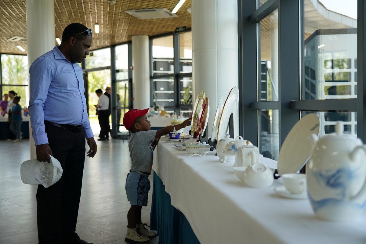 A young foreigner looks at a ceramic object at local company in Tangshan, Hebei province on June 30, 2023. [Photo provided to chinadaily.com.cn]
