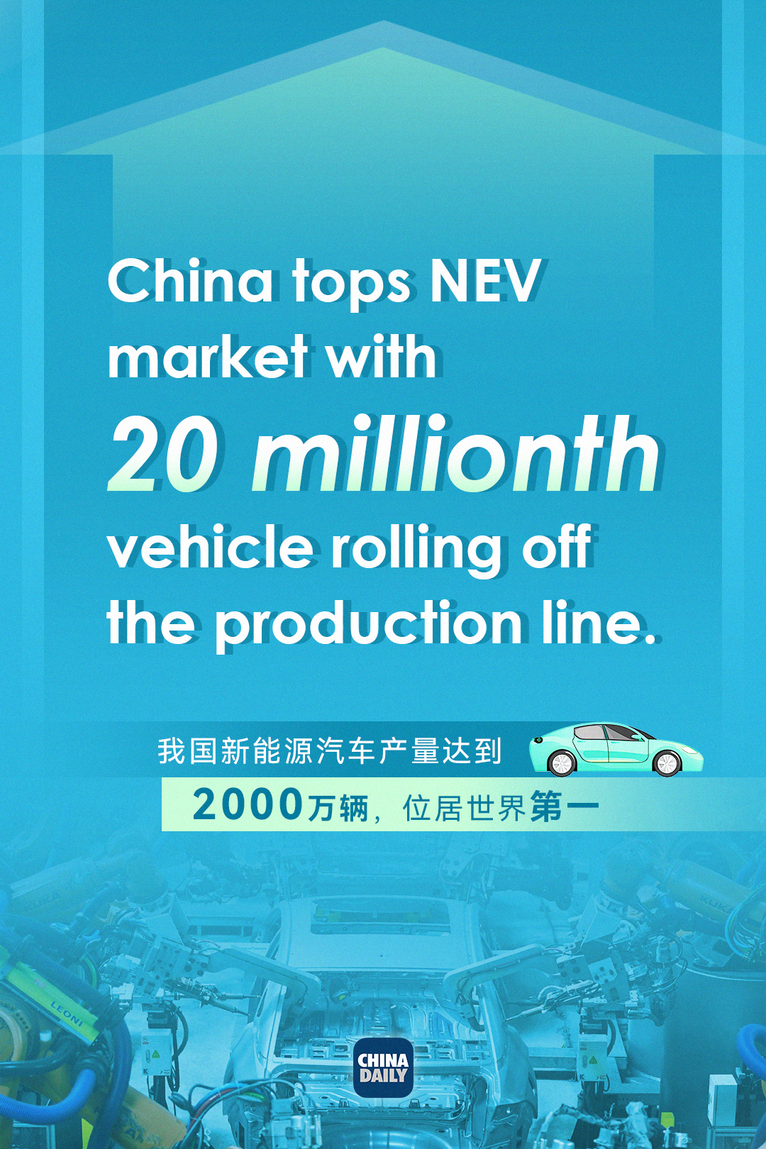 China's 20 millionth new energy vehicle (NEV) rolled off the production line on Monday in Guangzhou, capital of Guangdong province.