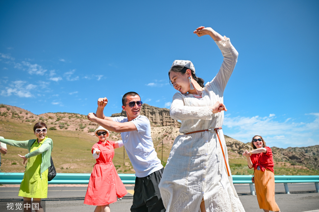 Tourists visit a scenic area in Changji, Xinjiang Uygur autonomous region, June 28, 2023. [Photo/VCG]
