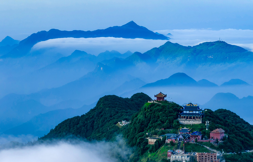 On the evening of July 4, something truly magical unfolded in Huaying Mountain, Guang'an city, Sichuan province. As the rain cleared, the peak of this majestic mountain, often hailed as the "little Emei Mountain of eastern Sichuan," became shrouded in ethereal clouds and mist, unveiling a breathtaking masterpiece that resembled an ink painting.
