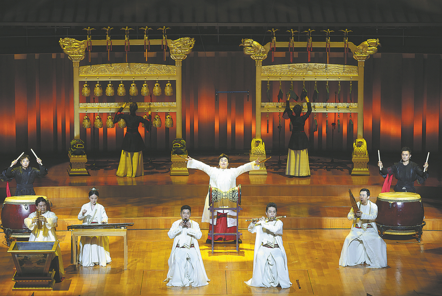 The stage of the performance is designed in the style of an imperial palace. JIANG DONG/CHINA DAILY