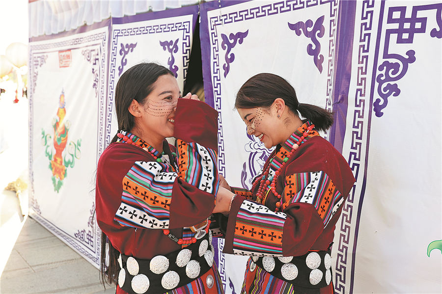 Last-minute checks are carried out before performers take to the stage at the expo's opening ceremony on June 16. [Photo by Feng Yongbin/China Daily]