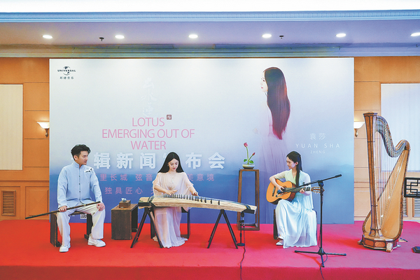 In the titular work, Lotus Emerging Out of Water, a classic guzheng piece, Yuan performs with harpist Zhang Xiaodi. The piece is an ode to the elegance of the noble lotus, the roots of which sit in the muddy water, making the flower a symbol of purification.