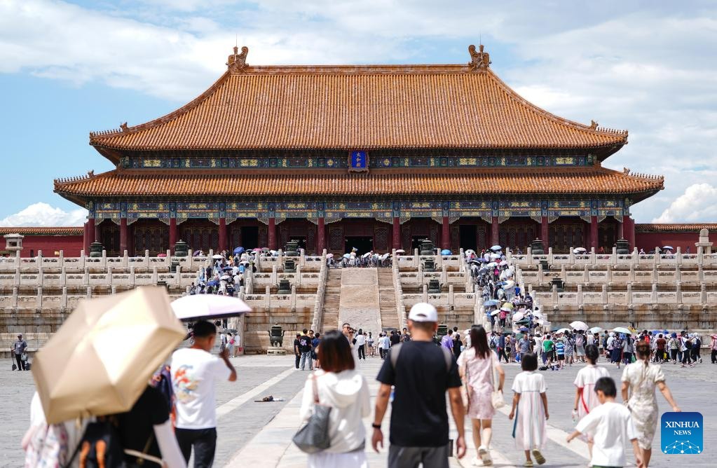 Tourists visit the Palace Museum, also known as the Forbidden City, in Beijing, capital of China, July 8, 2023. Beijng is seeing an increasing number of tourists as summer vacation starts across China. [Photo/Xinhua]