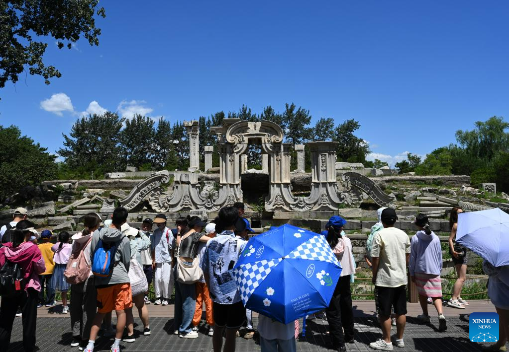 Tourists visit the Yuanmingyuan Park in Beijing, capital of China, July 8, 2023. Beijng is seeing an increasing number of tourists as summer vacation starts across China. [Photo/Xinhua]