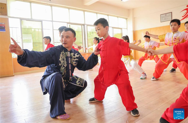 A martial art teacher teaches students in Lanshan district of Linyi, East China's Shandong province, July 8, 2023. [Photo/Xinhua]