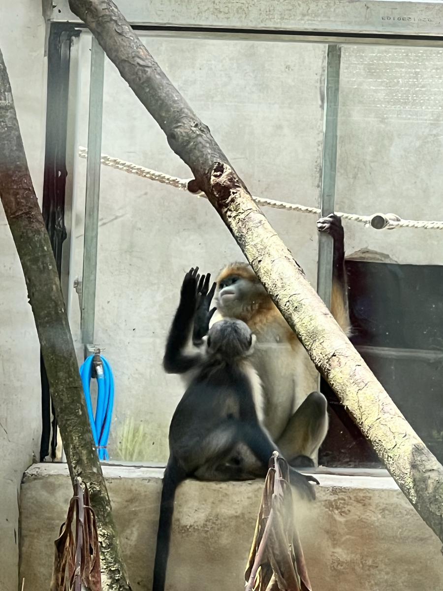 Gray snub-nosed monkeys play in the wildlife rescue center of Fanjingshan National Nature Reserve.[Photo by Wang Jin/provided to chinadaily.com.cn]