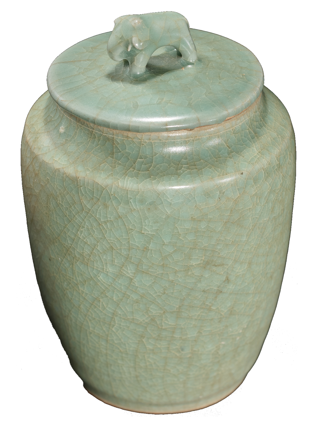 Lidden-celadon jar with an elephant-shaped knob, Southern Song Dynasty (1127-1279), Longquan kiln [Photo/Official WeChat account of the Wenzhou Museum]