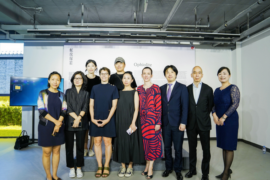 Guests pose for a group photo at the opening of  Ophiolite in Beijing on June 22, 2023. [Photo/Courtesy of Choi Centre•Cloud House]