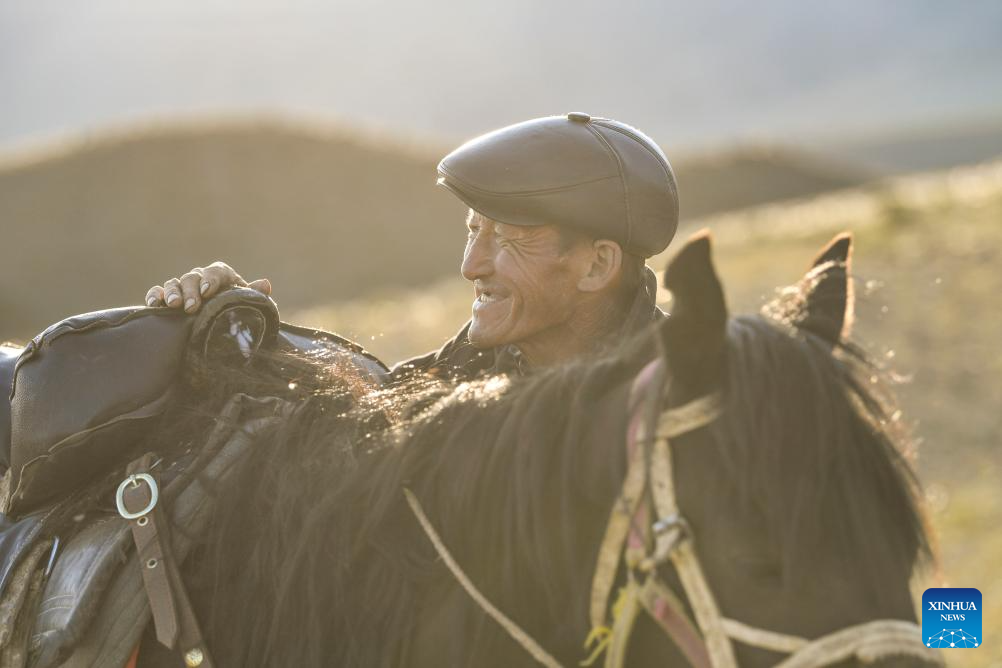 Habudelashen Nusupbek is seen during the trip to the summer pastures in Yumin county, Northwest China's Xinjiang Uygur autonomous region, July 3, 2023. [Photo/Xinhua]