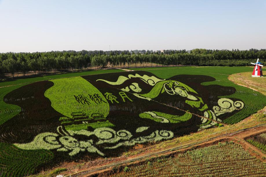Giant drawings created at a large rice paddy in Xushui district, Baoding, Hebei province provide a marvelous view this month.[Photo by Bai Tianlong/ For chinadaily.com.cn]