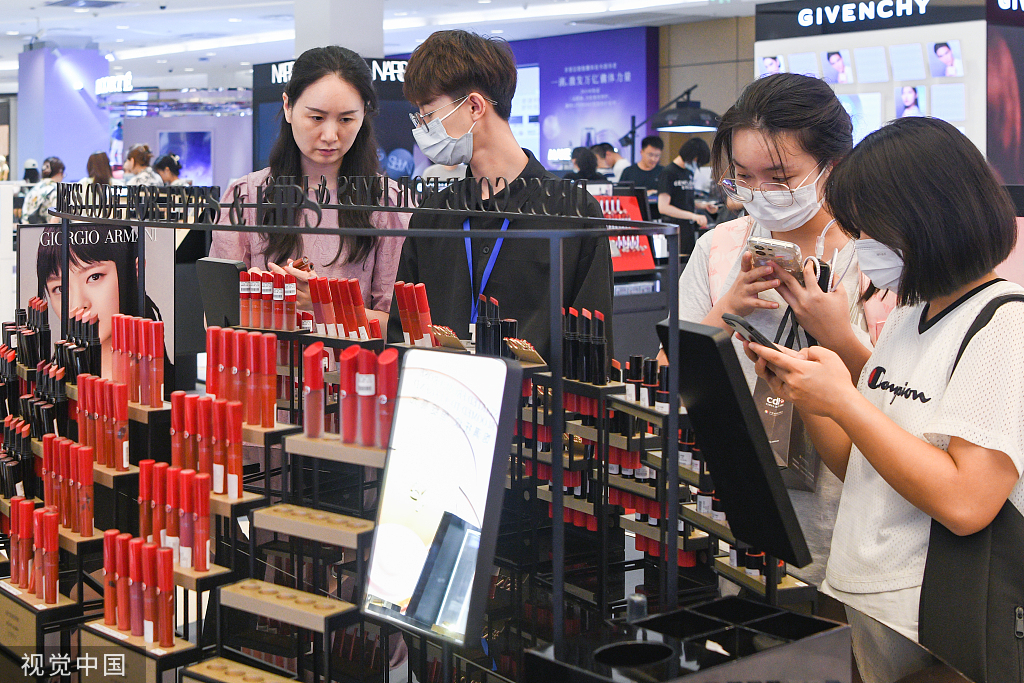 Customers select cosmetics at a duty-free shop in Haikou, Hainan province, July 13, 2023. [Photo/VCG]