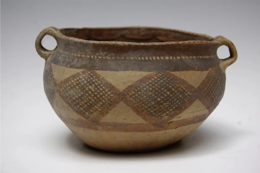 Painted pottery jar with a big mouth, two ears and diamond-shaped patterns [Photo/Official WeChat account of the Wuhan Museum]