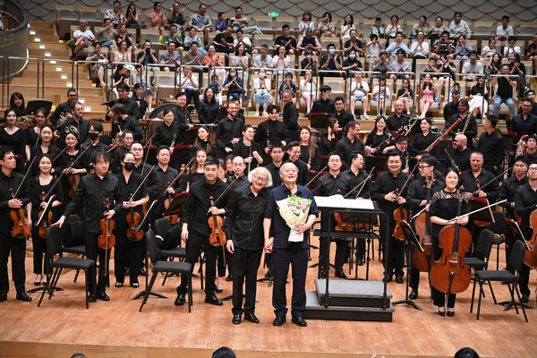 Conductor Chen Xieyang and composer Guan Xia (right). [Photo provided to China Daily]