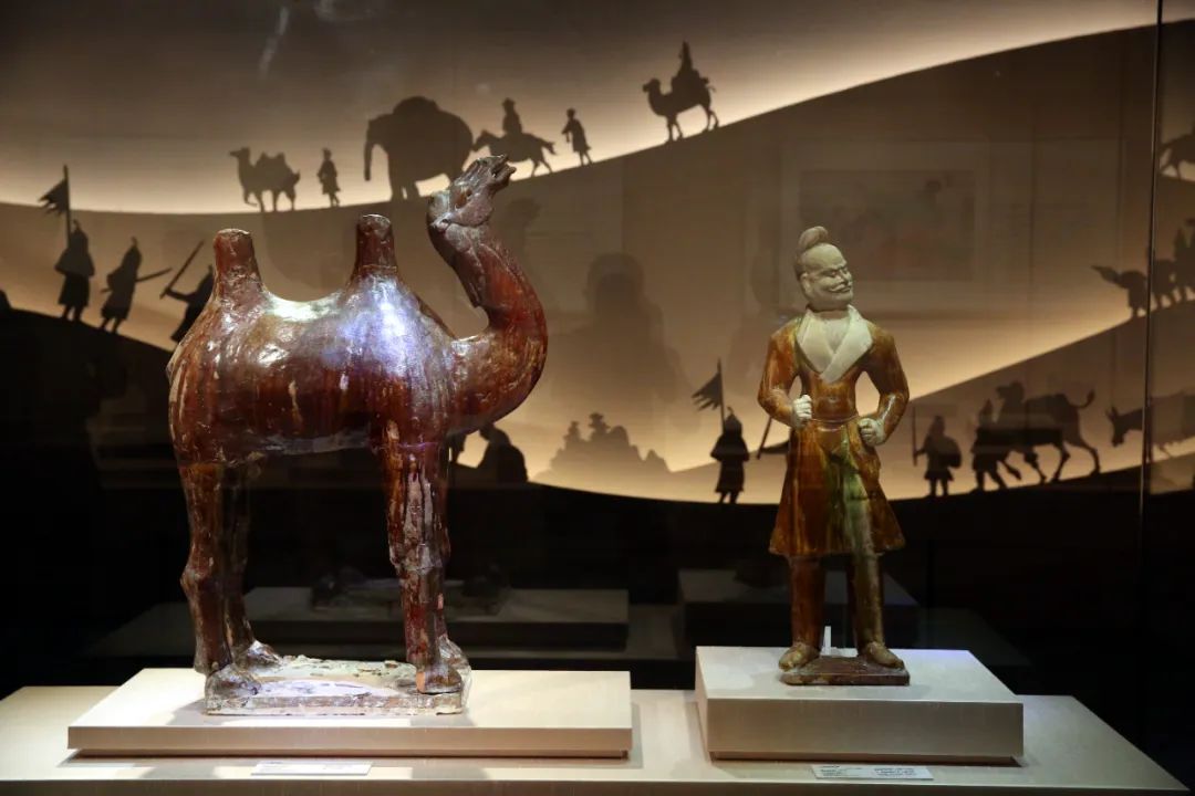 camel and a figurine leading the camel, Tang Dynasty (618-907), from the collection of the Gansu Provincial Museum [Photo/Official WeChat account of the China National Silk Museum]