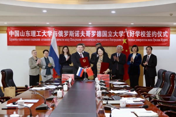 At the Shandong University of Technology, the delegation witnessed a signing ceremony of a friendly school agreement between the Shandong University of Technology and Yaroslav-the-wise Novgorod State University.