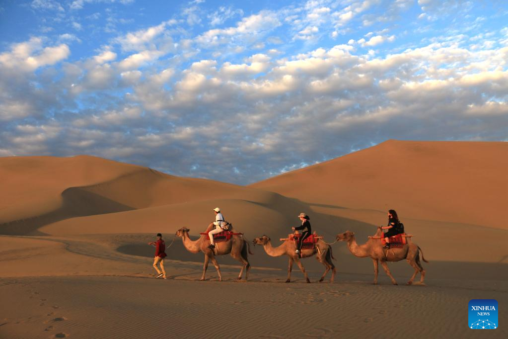 Due to a large flow of tourists, camel-riding services have been temporarily suspended at the Mingsha Mountain Crescent Spring Scenic Area in Dunhuang, Gansu province, according a Wednesday report from Jimu News, a news portal based in Hubei province.