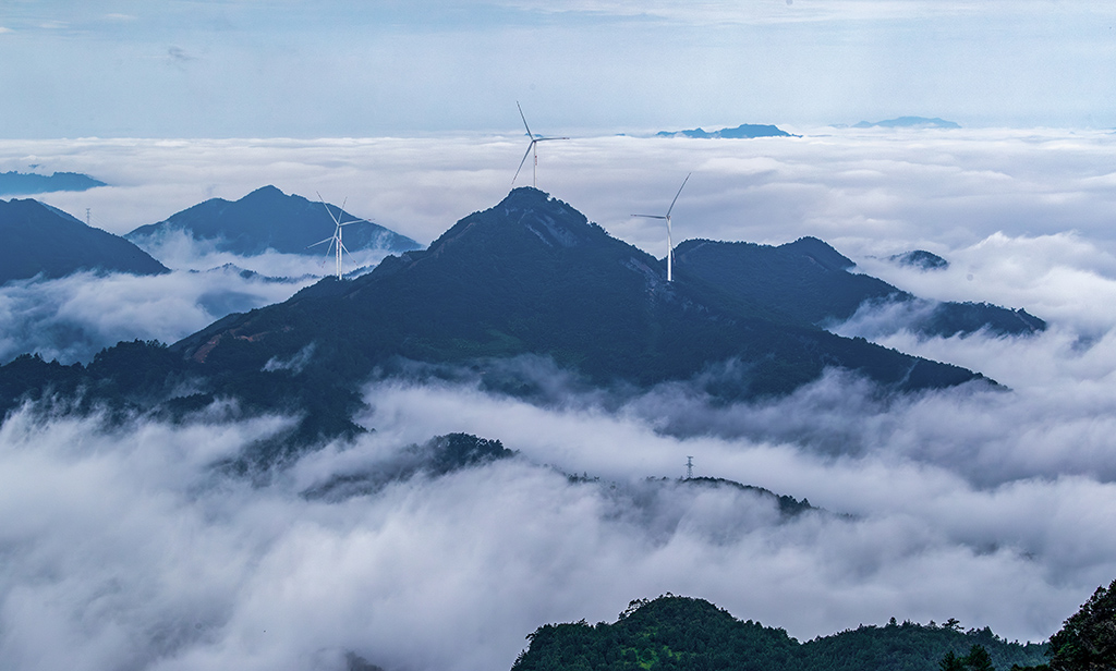 After days of rainfall, the skies above Fengchui village in Chongqing suddenly fell calm. The ethereal clouds and mist rising from the mountain streams "danced" around the houses, mountains, and wind power generation workshops like flowing clouds, transforming the mountain village into a splendid watercolor painting.