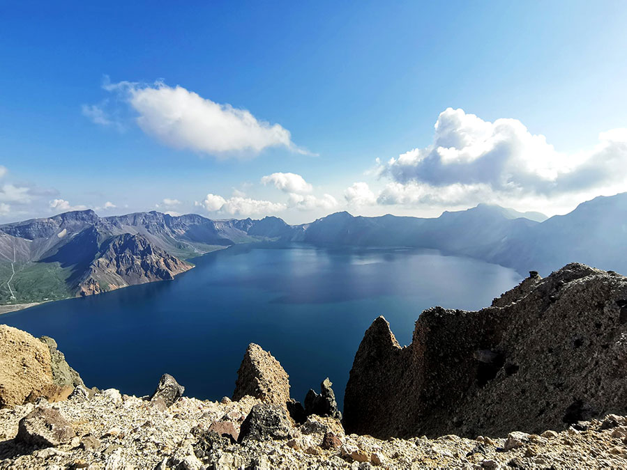 A view of the Heavenly Lake taken on July 20, 2023. The lake is the world's highest volcanic lake at an elevation of 2,700 meters and is on the border of China and the Democratic People's Republic of Korea. The viewing spot is closed during bad weather. [Photo by Guan Xiaomeng/chinadaily.com.cn]