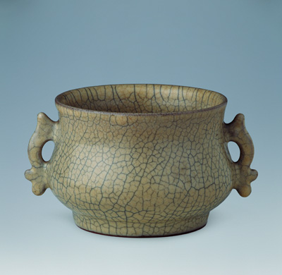 Check out this Southern Song Dynasty (1127-1279) Ge ware, an incense burner with two fish-shaped ears. Copying ancient design, the incense burner has a slightly trumpet-shaped mouth, a bulging belly and a ring foot. Crackle patterns spread across the whole incense burner, providing its distinctive aesthetic.